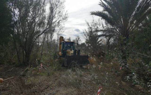 En el municipio de Ulea, se ha llevado a cabo la retirada de las bardomeras que había en las zonas colindantes a la mota en la margen izquierda del río Segura para, una vez molidas, transportarlas al vertedero.