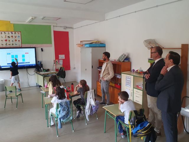 El consejero se reunió con el equipo directivo y visitó a los alumnos de 3° de Primaria que estos días están trabajando con los orientadores en el test rápido de detección temprana de dificultades de aprendizaje, que se realiza a nivel regional a 40.000 alumnos de 3° de Educación Infantil, 3°de Primaria y 1° de la ESO.