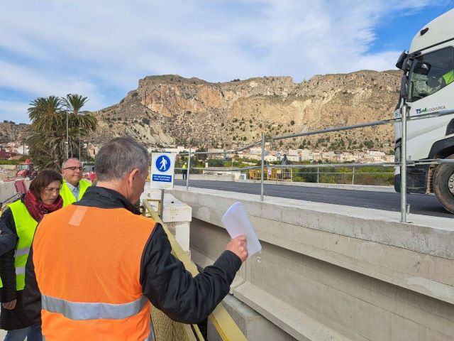 La directora general de Carreteras de la Consejería de Fomento e Infraestructuras, Lola Marín, visitó hoy las obras que se están ejecutando en el puente de Ulea, acompañada por el alcalde, Víctor Manuel López.